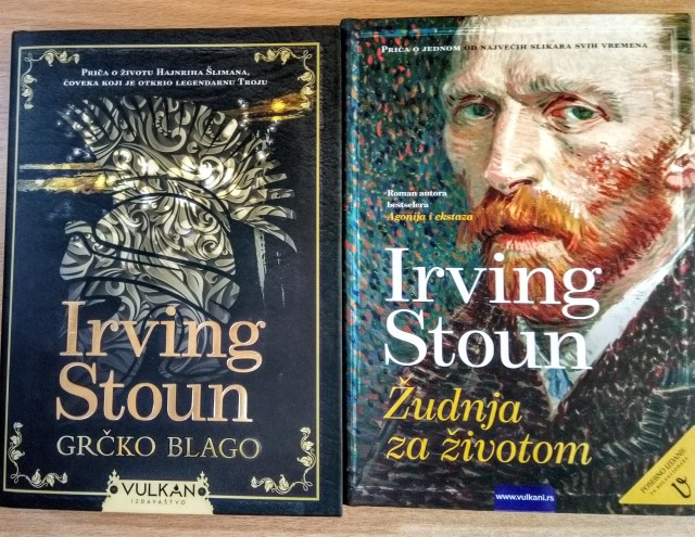 Druge dve sam nabavila na trafikama Moj kiosk a to su Žudnja za životom i Grčko blago od Irvinga Stouna. Prva govori o jednom od najboljih slikara ikada Vinsentu Van Gogu, a druga o Hajnrihu Šilmanu, nemačkom arheologu koji je otkrio Troju. Ove knjige govore o važnim ljudima u umetnosti, i meni kao budućem istoričaru umetnosti (ako Bog da !🤞) jako zanimljive.